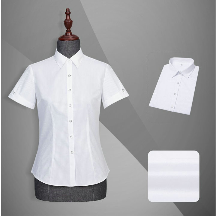 YW108女短袖竖条纹方领衬衫